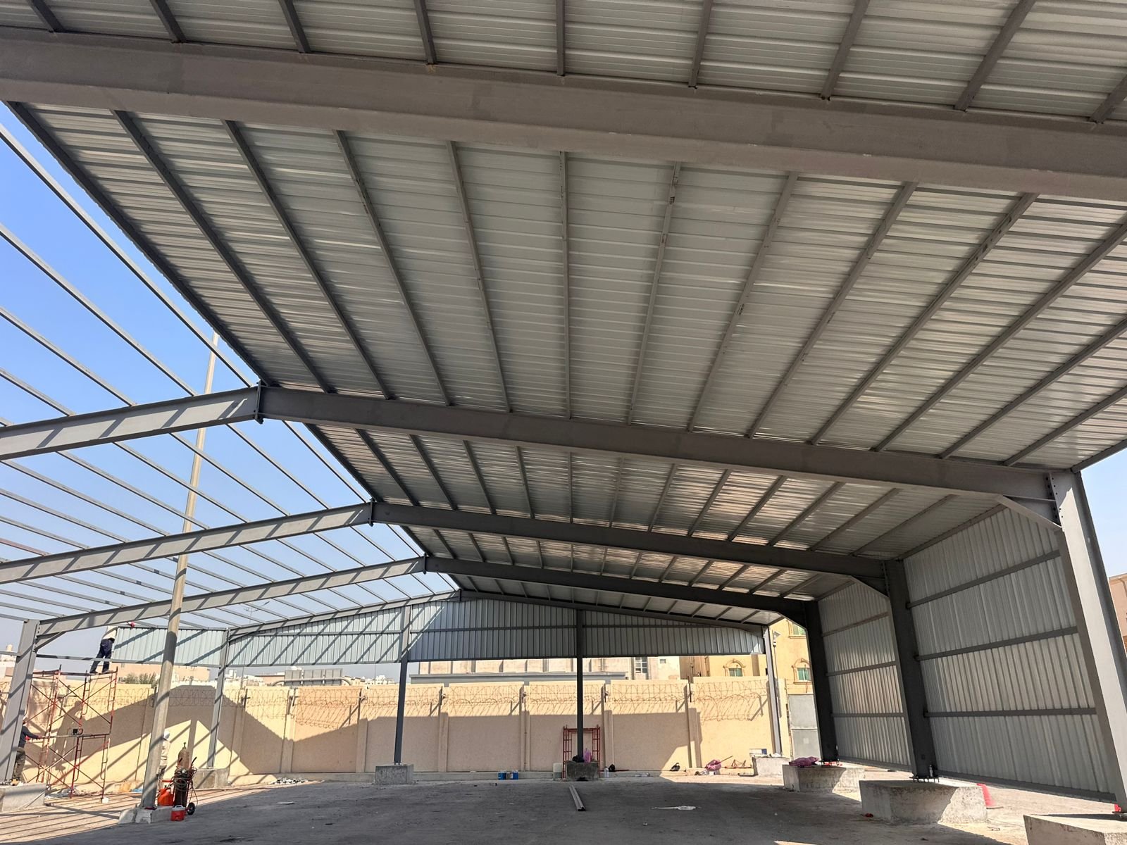 تعتبر الهناجر من أكثر أنواع المستودعات انتشاراً، حيث تعتمد على هيكل حديدي قوي مع سقف معدني مقاوم للحرارة والرطوبة.